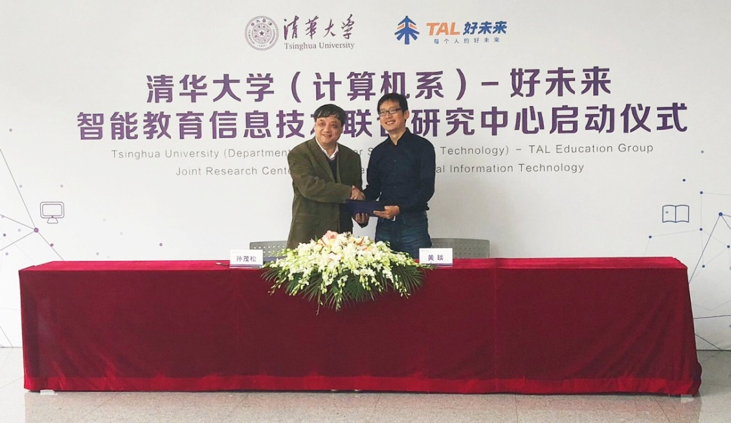 清华大学计算机系党委书记孙茂松和好未来CTO黄琰签署合作协议