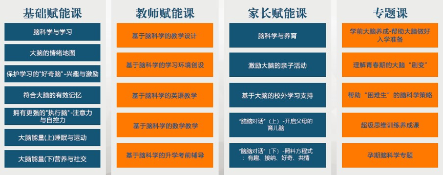 在该课程体系中,“教师赋能课”将为一线教师提供脑科学教育教学方法,根据神经教育学理论帮助教师进行教学动态调整,或将带来传统师训模式新升级;“家长赋能课”通过“脑脑对话”,帮助家长更准确有效地理解、引导儿童;而“基础赋能课”与“专题课”为教师和家长的通用课程,旨在提供脑与教育的基础知识,针对儿童各个关键期及特质,定向提供以问题解决为导向的教学指导。