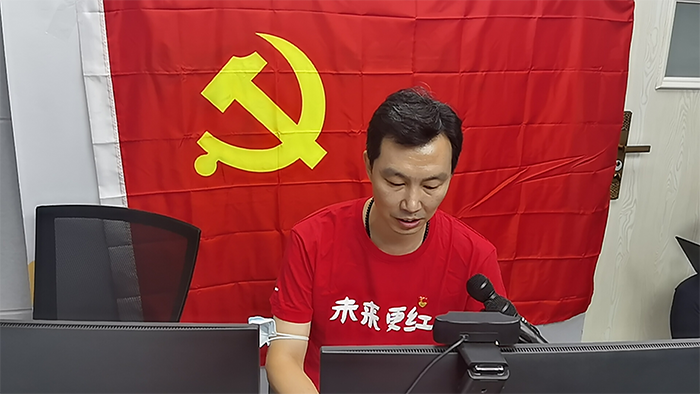 在直播间发表讲话的场景
