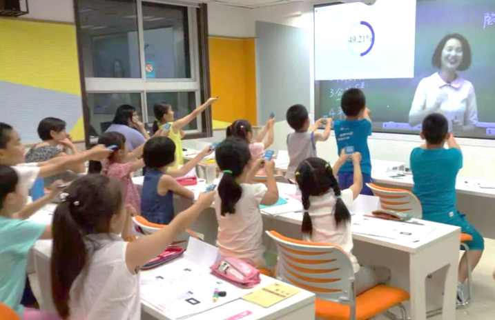 教室正中间的120英寸大屏幕中,主讲老师抛出了一个“鸡兔同笼”的问题,学生拿起手边的答题器。在教室里,还有一位辅导老师实时监测学生的答题情况……这是教育界时下很“火”的“双师课堂”的教学场景。