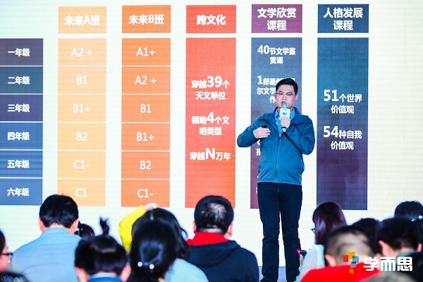 3月26日,学而思英语发布了小学未来体系。学而思英语小学产品负责人尹旭为到场的100多位家长及学员进行了介绍,并就未来体系的具体细节进行了深入的沟通交流,宣告学而思小学未来体系正式重磅上线。